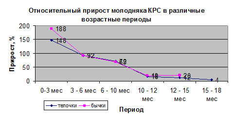 Относительный прирост бычков племзавода ЗАО «Глинки» г. Курган, %