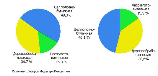 Эта структура способствовала развитию и усилению тех диспропорций в развитии лесного сектора, которые исторически складывались по мере освоения территории страны. В Европейско-Уральской части России сосредоточилось 68,6% объема выпускаемой продукции переработки древесины и 63,7% стоимости промышленно-производственных фондов. Восточная Сибирь практически сравнялась с Северным районом Европейской части России, Дальний Восток фактически приблизился по этим показателям к Северо-Западному району, Западная Сибирь немного опередила Волго-Вятский район Европейской части России.