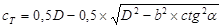 Высота гребней с на дне борозды, образованной диском, зависит от диаметра диска D, угла атаки α и расстояния между дисками b. Из треугольника OEF (см. рис. 1)