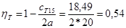 По результатам расчетов построил график зависимости высоты гребней и равномерности обработки почвы по глубине дисковыми орудиями от угла атаки. Из графика видно что при угле атаки α = 150 глубина с = 18,5см, изменив его на α = 350 мы получим с = 1,9 см. Чем больше угол, тем меньше будет глубина обработки, и тем больше коэффициент равномерности обработки почвы η.