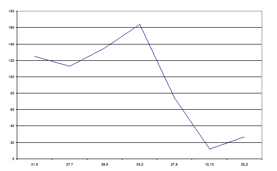 | 2005 | 28,2 | 27 | 2,0 | 2 | 23 | |