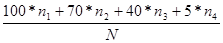 100,70,40,5- коэффициенты выражающие жизненное состояние древостоя соответствующей категории;