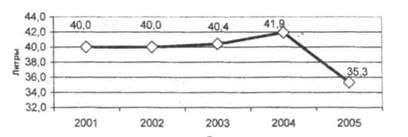 В натуральном выражении потребление нефтепродуктов в расчете на 1 га сельскохозяйственных угодий за последние годы оставалось стабильным, а в 2005 году наметилась тенденция снижения потребления нефтепродуктов в расчете на 1 га сельскохозяйственных угодий (рис.9). Это, прежде всего, вызвано резким ростом цен на нефтепродукты в последние годы.