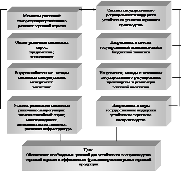 Особое и важное место в структуре аграрного производства страны принадлежит зерновой отрасли и зернопродуктам, признанных одним из основных факторов устойчивости ее экономики и национальным достоянием. Вместе с этим, в силу естественно-биологических, организационно-экономических особенностей и в условиях несовершенства рынка, постоянно возникающих расхождений во взаимоотношениях между его субъектами возникла необходимость регулирования производства и реализации зерновой продукции. Развитие рыночных отношений в России, как свидетельствует теория и практика, объективно связано с созданием системы их регулирования со стороны государства, выступающего полноправным субъектом аграрного рынка и обладающим для этих целей необходимыми средствами.