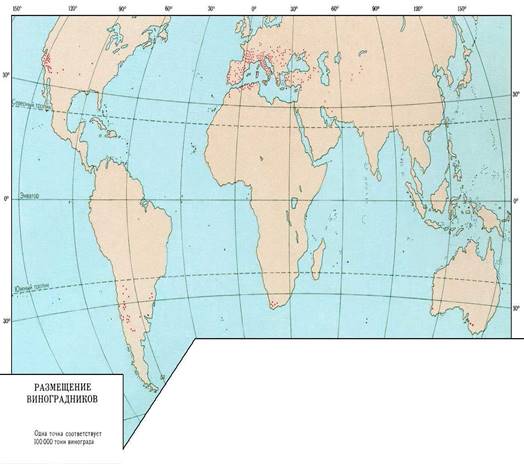 4. НА КАРТОСХЕМЕ ПОКАЗАНО РАЗМЕЩЕНИЕ ОСНОВНЫХ РАЙОНОВ ВИНОГРАДАРСТВА В МИРЕ (РОССИИ)