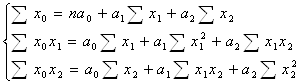 Для того чтобы найти параметры уравнения связи, составим систему нормальных уравнений с тремя неизвестными: