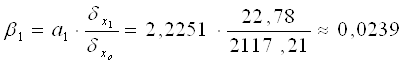 Для сравнения оценок роли различных факторов в формировании результативного признака рассчитаем коэффициенты эластичности, β-коэффициенты и коэффициенты отдельного определения.