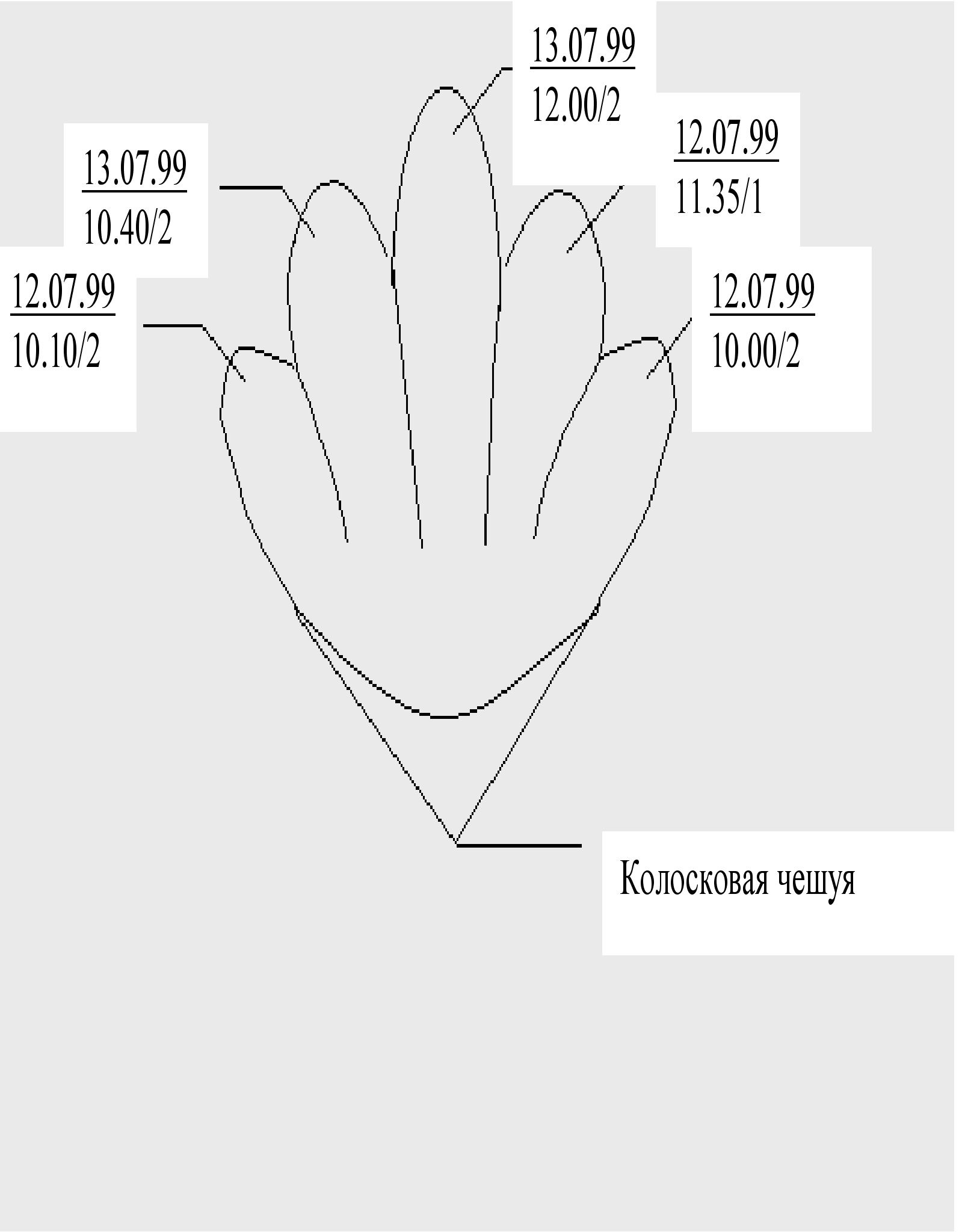 | Среднее количество колосков | Дата цветения | Среднее время цветения и количество вышедших пыльников | ||||