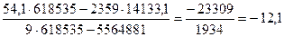 Y2003 = -12,1 – 0,22 * 268 = -71,06