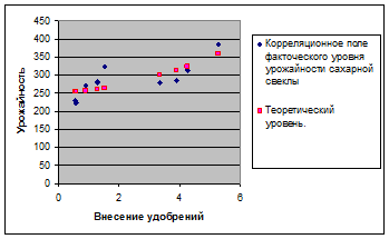 Коэффициент регрессии показывает, что при увеличении внесения количества минеральных удобрений на 1 га сахарной свеклы, ее урожайность в среднем увеличивается на 3,53 ц/га.