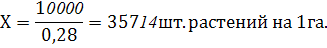 Зная площадь питания одного растения, находим густоту стояния растений на 1га:
