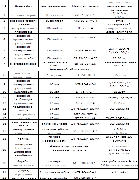 За последние 5 лет средний урожай капусты в хозяйстве составлял 90т/га. Разница между запланированным и средним урожаем – 10т/га. На эту разность делается расчёт внесения удобрений.