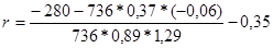 Корреляционная решетка для вычисления коэффициента корреляции между показателями удоя (хi) и жирномолочности (уi) представлена в таблице 1. При составлении корреляционной решетки классы в верхней строке располагаются слева направо в возрастающем порядке, а в первом столбце сверху вниз в убывающем порядке.