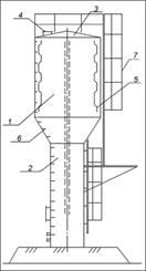 Рисунок – 4. Основные элементы Водонапорных башен Рожновского (ВБР).Бак, 2 – Опора, 3 -Стальная крышка, 4 -Смотровой люк, 5 - Скобы-льдоудержатели, 6 – Лестница, 7 – Ограждение.