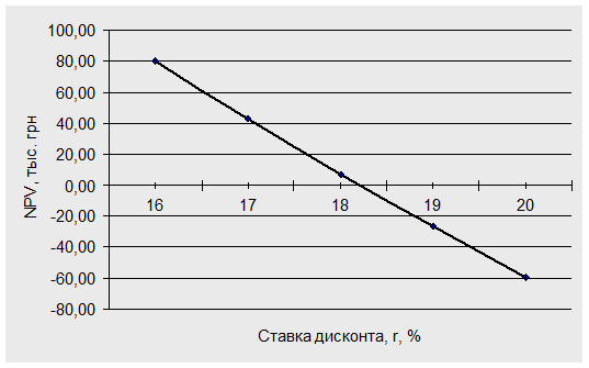 | NPV, тыс грн | 80,59 | 42,61 | 7,08 | -26,40 | -59,19 |