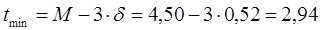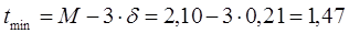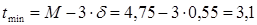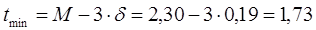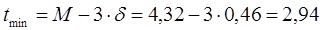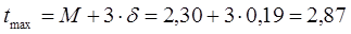 Аналогично для границы второго класса t2 =2,95 будем иметь