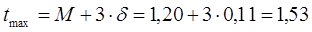 2) Имеем культуру с параметрами M=2,30 мм и δ=0,35 мм. Рассчитаем, сколько зерен находиться по ширине семян до размера t=1,25.