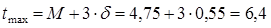 Аналогично для границы второго класса t2 =5,05 будем иметь