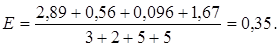 Теперь подсчитаем технологический эффект разделения (E) по толщине.