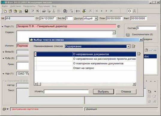 | Автор (корреспондент) | При регистрации поступившего документа записывается название организации (лица) - автора документа. При регистрации отправляемых документов записывается название организации (лица) - корреспондента. Допускается применение сокращенного названия организации. |