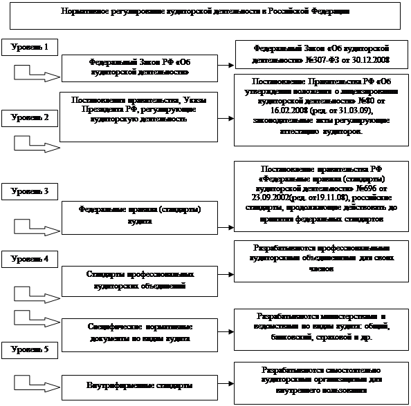 Существует пять уровней нормативного регулирования аудиторской деятельности в РФ: