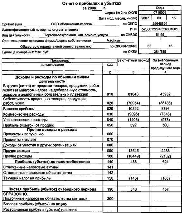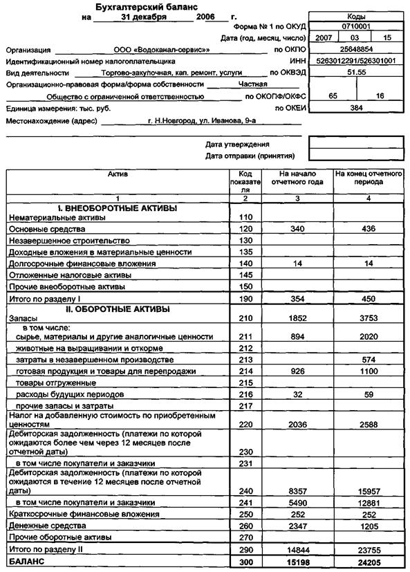 Бухгалтерская отчетность ООО «Водоканал-сервис»