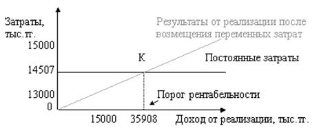 Таким образом, расчет себестоимости по переменным затратам в рамках "директ-костинг", определение на этой основе маржинального дохода позволяют определить в какой момент предприятие перестает покрывать свои затраты.
