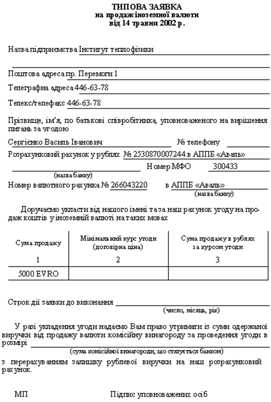 Банк приймає до виконання заяву клієнта на придбання на УМВБ іноземної валюти тільки під зареєстрований у цьому банку контракт на імпорт товарів (робіт, послуг) і за наявності необхідної суми на поточному рахунку клієнта на момент складання угоди про придбання іноземної валюти. Проте за відсутності таких коштів в окремих випадках банк має право надати короткостроковий кредит.