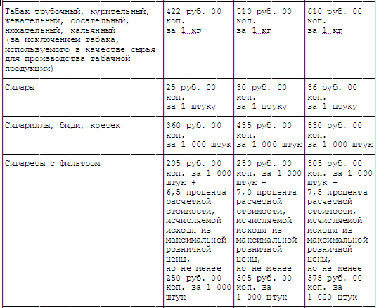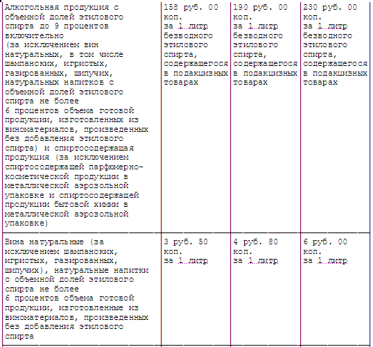 В соответствии с п. 1 ст. 193 НКРФ налогообложение подакцизных товаров и подакцизного минерального сырья осуществляется по следующим единым на территории Российской Федерации налоговым ставкам: