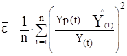 На основі точкового прогнозу побудуємо інтервальний прогноз зі значимістю 95% і ступенях свободи, що дорівнюють 10 та використання середньоквадратичної похибки апроксимації, що розраховується за формулою
