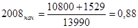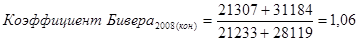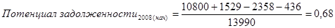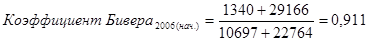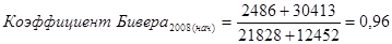 Ещё один довольно представительный коэффициент платёжеспособности – коэффициент Бивера. С помощью данного коэффициента можно проследить изменение дебиторской задолженности как фактора, влияющего на приток денежных средств. Таким образом, в течение трёх лет притоком денежных средств не могут быть покрыты сумма краткосрочных и долгосрочных обязательств, так как исследования Бивера показали, что для благополучных организаций такой показатель находится в приделах от 0,911 до 1,53. Динамичный показатель степени задолженности характеризует степень погашения задолженности по уплате основной суммы долга. Чем меньше показатель степени задолженности, тем организация считается более ликвидной. Для кредитора этот коэффициент определяет также риск кредитования. Из расчетов видно, что только в 2008 году организация расплатилась с долгами и коэффициент составил 11,42.