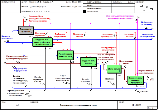 На рисунке А.3 представлена детализация процесса А3 «Реализовать процессы жизненного цикла». Анализ соответствия делового процесса «Производить женские пальто» требованиям СТБ ИСО 9001 приведен в таблице А.2. На диаграмме присутствуют все процессы, обязательные с точки зрения СТБ ИСО 9001.