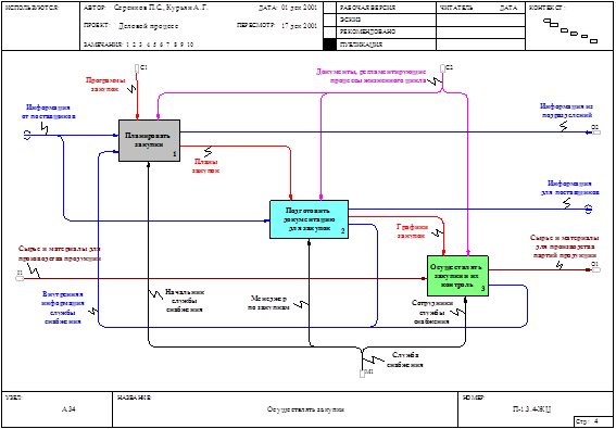 | Раздел 7.4.2. Информация по закупкам | Вход процесса А341. Дуга «Программы закупок». Выход процесса А341. Дуга «Планы закупок». Выход процесса А341. Дуга «Информация из подразделений». Выход процесса А342. Дуга «Графики закупок». Выход процессов А342-А343. Дуги «Внутренняя информация службы снабжения». Выход процесса А341. Дуга «Информация для поставщиков». Входы процессов А341, А342. Дуги «Информация от поставщиков» |