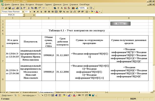 Поскольку учет на предприятии автоматизирован, в дипломной работе была предложена разработка программно-информационной системы для учета внешнеэкономических контрактов, чтобы руководство предприятия имело возможность принимать решения на основании разработанных таблиц. А также было уделено внимание разработке системы, которая будет анализировать внешнеэкономическую деятельность предприятия.
