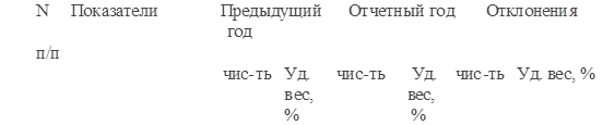 Ч р -чих = Т (н-час) / Ф пл. * К в.н., где Ф пл - плановый фонд рабочего времени 1 рабочего,К в.н. – коэффициент выполнения норм.Таким образом, плановая потребность в рабочих зависит от прогрессивности норм времени и степени их выполнения.По другим категориям персонала планирование численности осуществляется исходя из норм управляемости (руководители) и в соответствии со штатным расписанием.Сравнением фактической численности с плановой потребностью оценивается обеспеченность предприятия кадрами по каждой категории, а рабочих – по профессиям. Для анализа структурной динамики работающих рассчитывается удельный вес численности по категориям в общей численности персонала и сравнивается по периодам.Анализ состава, структуры и динамики персонала предприятия