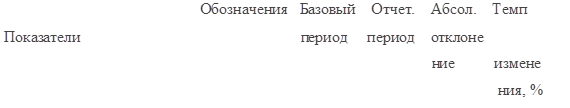Исходные данные:1. Объем товарной продукции, тыс. ТП руб.2. Среднесписочная численность работающих, чел. Чппп3. Среднесписочная численность Чр рабочих, чел.4. Удельный вес рабочих, % У5. Количество человеко-дней, отработанных всеми рабочими Вппп6.Количество человеко-часов, Вгод. отработанных всеми рабочими. Расчетные показатели: 7. Среднегодовая выработка 1 В дн. работника (1:2)8. Среднегодовая выработка 1 Вчас. Т рабочего (1:3) Д9. Среднедневная выработка 1 рабочего (1:5)10. Среднечасовая выработка 1 рабочего (1:6)11. Продолжительность рабочего дня (6:5)12. Количество дней, отработанных одним рабочим (5:3)Снижение продолжительности рабочего дня и количества отработанных одним рабочим дней, говорит об увеличении целодневных и внутрисменных потерь рабочего времени, устранение которых является резервом повышения производитльности труда.Для расчета влияния факторов на среднегодовую выработку рабочего она представляется в виде формулы: Вгод. = Вчас. ∗ Т ∗ Д Влияние факторов на годовую выработку одного работающего можно определить, используя показатель удельного веса рабочих в численности промышленно- производственного персонала. ВППП = Врабочего ∗ У