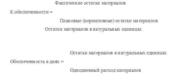 Основная потребность в материальных ресурсах определяется на производство продукции; дополнительная связана с содержанием и ремонтом зданий, сооружений, оборудования; пополнением запасов.Плановая величина материальных ресурсов рассчитывается на производственную программу (по нормам на каждый вид продукции); на ремонтно-эксплуатационные нужды; на пополнение запасов материалов.Плановую потребность определяют работники отдела материально-технического снабжения (МТС), которые также отслеживают фактическое поступление материалов.В случае, если предприятие имеет государственный заказ, то этот заказ должен быть обеспечен выделенными материальными ресурсами. Остальная часть продукции выпускается в соответствии с договорами, и на нее необходимо заключать договоры о поставке необходимых материалов со снабженческими организациями или изготовителями. В договорах должны быть определены сроки поставок, их объем, качество материалов, цена, комплектность и другие условия.При анализе фактические поставки сопоставляются с запланированными по всем этим параметрам, выясняются причины отклонений; в случае необходимости составляются претензии к поставщикам.Если при заключении договоров не было предусмотрено обеспечение плановой потребности по всем видам материалов, то необходимо выяснить, каким образом предприятие могло дополнительно обеспечить эту потребность.Оценка обеспеченности материалами производится с помощью относительных показателей: К выполнения договоров = фактически поставлено / заключено договоровК выполнения плана поставок = фактически поставлено / плановая потребность Любые изменения в договорах поставок продукции или в ходе производства продукции (брак) требуют внесения соответствующих изменений в план поставок материалов.При оценке выполнения плана по ассортименту поступивших материалов засчитывается фактически поставленное их количество, но в пределах плановой потребности, предусмотренной договором. Если по какому-либо виду материалов есть недопоставки, то в целом план по ассортименту будет недовыполнен, поскольку превышение фактических поставок над предусмотренными в договоре (плановой потребностью) не учитывается. Такой анализ имеет оперативный характер, т.е. должен проводиться ежедневно, и в случае отклонений необходимо принимать оперативное управленческое решение.При оценке качественных параметров поступающих на предприятие материалов нужно проводить входной контроль качества, для чего иногда требуется лабораторное исследование или другое специальное измерение.На объем поставок материалов в стоимостных единицах измерения существенное влияние оказывают изменение цен, тарифов, условия поставки, удаленность поставщиков и другие внешние факторы.Цель анализа управления запасами материалов на предприятии – обеспечение оптимального уровня запасов, величина которого позволила бы работать без перерывов, без простоев, ритмично; с другой стороны необходимо обеспечивать минимальные затраты на хранение материалов и потери при этом.Запасы материалов бывают вызваны различными причинами (сезонность заготовок; транзитные нормы поставок и другие), но, как правило, предприятие стремится обеспечить минимальную или нормативную потребность в материалах, т.к. запасы всегда отвлекают 