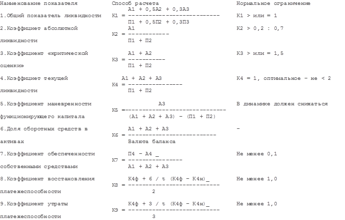 На следующем этапе анализа изучаются ликвидность баланса (равновесие активов и пассивов по срокам использования), сбалансированность денежных потоков и платежеспособность предприятия.