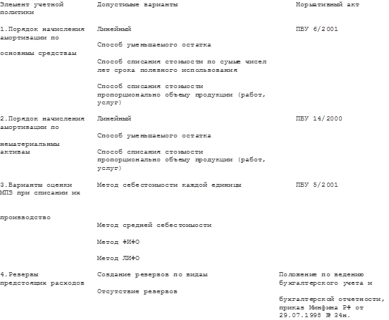 ПРИЛОЖЕНИЕ 7. Элементы учетной политики, влияющие на показатели отчетности.