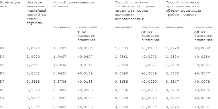 ПРИЛОЖЕНИЕ 9. Изменения финансовых коэффициентов в зависимости от применяемых методов начисления амортизации основных средств
