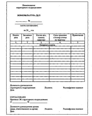 Номенклатура дел структурного подразделения разрабатывается с привлечением ведущих специалистов и согласовывается с канцелярией и архивом организации.