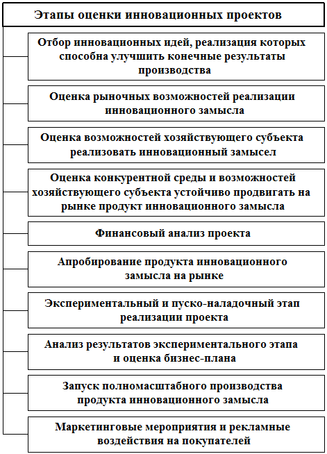Как видно из рис.1, на первом этапе следует выбрать и оценить инновационные идеи, реализация которых способна существенно улучшить конечные результаты деятельности хозяйствующего субъекта, изыскавшего необходимые для этого инвестиционные ресурсы.