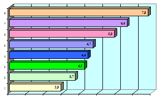 В табл.2 помещено девять оценочных показателей, хотя на практике их число может быть более значительным. В конкретных случаях реально требуемый состав показателей может быть небольшим - до двух-трех, максимум четырех.