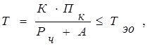 где Т - предполагаемый срок окупаемости инвестиционного проекта, годы; Рч - чистая прибыль в первый год реализации проекта (при относительно равномерной ее величине в последующие годы); А - среднегодовая сумма амортизационных отчислений на полное восстановление основных средств; Пк - процентная ставка по кредитам; Тэо - экономически оправданный срок окупаемости инвестиций, установленный инвестором (финансирующей организацией) совместно с руководством инвестируемого предприятия (в данном случае Тэо = 8 лет); К - полная сумма расходов на реализацию инвестиционного проекта.