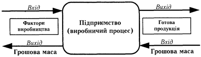 Підприємство можна розглядати як систему, призначену для трансформування факторів виробництва (техніка, сировина і матеріали, жива праця, капітал) у готову продукцію, тому його модель має таку форму (рис. 1).
