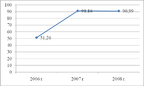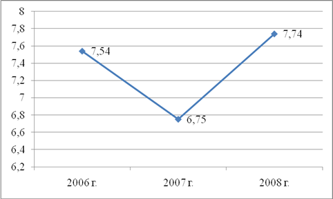 Из таблицы 1 видно, что выручка от реализации, балансовая прибыль и чистая прибыль возросли в период с 2006 по 2008 гг., при этом довольно высокими темпами. Это свидетельствует о том, что ООО «Тройка-ресурс» находится в стадии развития. В 2007 году по всем параметрам деятельности происходит улучшение. Это связано с тем, что предприятие проводит эффективную рекламную компанию, выходит на новые рынки и тем самым повышает результативность деятельности – прибыль имеет тенденцию к росту.