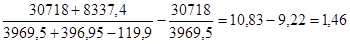 Резервы роста фондоотдачи (при условии привлечения дополнительной суммы основных фондов, которая понадобится для освоения резервов увеличения производства продукции – 10 % и резерва сокращения основных фондов за счет реализации, сдачи в аренду, консервации и списания – 3 %) составят: