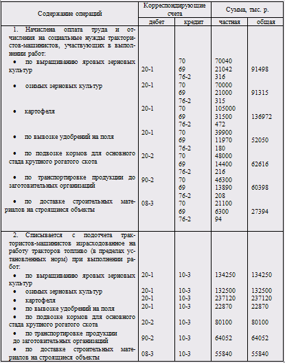 Расходы на оплату труда с отчислениями на социальные нужды трактористов-машинистов, комбайнеров, а также стоимость нефтепродуктов, использованных тракторами, комбайнами и другими самоходными сельскохозяйственными машинами, на счете 24 (или 23) не учитывают. Их включают в состав затрат на возделывание сельскохозяйственных культур и затрат незавершенного производства, на содержание отдельных видов и технологических групп скота, в состав транспортно-заготовительных расходов и относят на счета: 20 "Основное производство", 07 "Оборудование к установке", 10 "Материалы", 15 "Заготовление и приобретение материалов" и др.