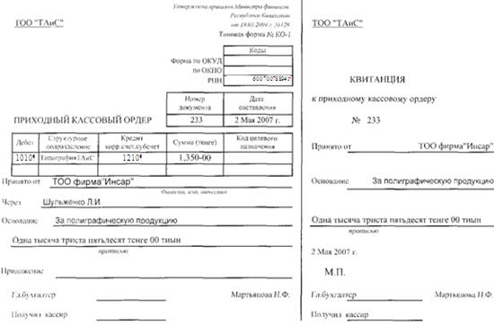 | 4 | Прих. орд. 233 | За полиграфическую продукцию Типография ТАиС Инсар фирма ТОО (разовое соглашение) |