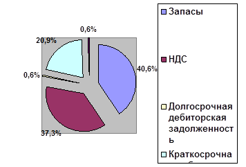 Выданные авансы в структуре оборотных средств занимают в среднем 24,16%. Авансы в абсолютном большинстве выдаются строительным организациям. Среди прочих дебиторов фигурируют различного рода переплаты по налоговым платежам: переплата по налогам в бюджеты субъектов РФ (665 тыс. руб. в 2004 г.); переплата по налогам в местные бюджеты (71 тыс. руб. в 2002 г.; 33 тыс. руб. в 2003 г. и 333 тыс. руб. в 2004 г.) и переплата по платежам в государственные внебюджетные фонды (3 тыс. руб. в 2003 г. и 14 тыс. руб. в 2004 г.).